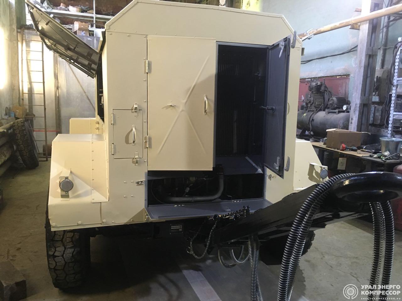 УКС-400В-П4М - передвижная компрессорная станция с приводом от дизельного двигателя ЯМЗ-236М2. Компрессорная станция способна гарантированно обеспечить бесперебойную работу без подключения к источнику электроэнергии.